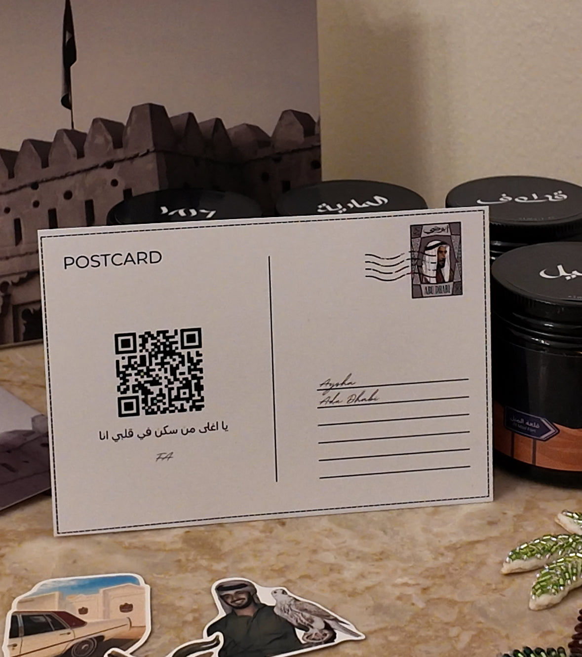 بطاقة هديك أنيقة بتصميم بطاقة بريدية، يمكنكم إضافة رسالتكم الخاصة لترافق طلبكم عند تقديمه كهدية